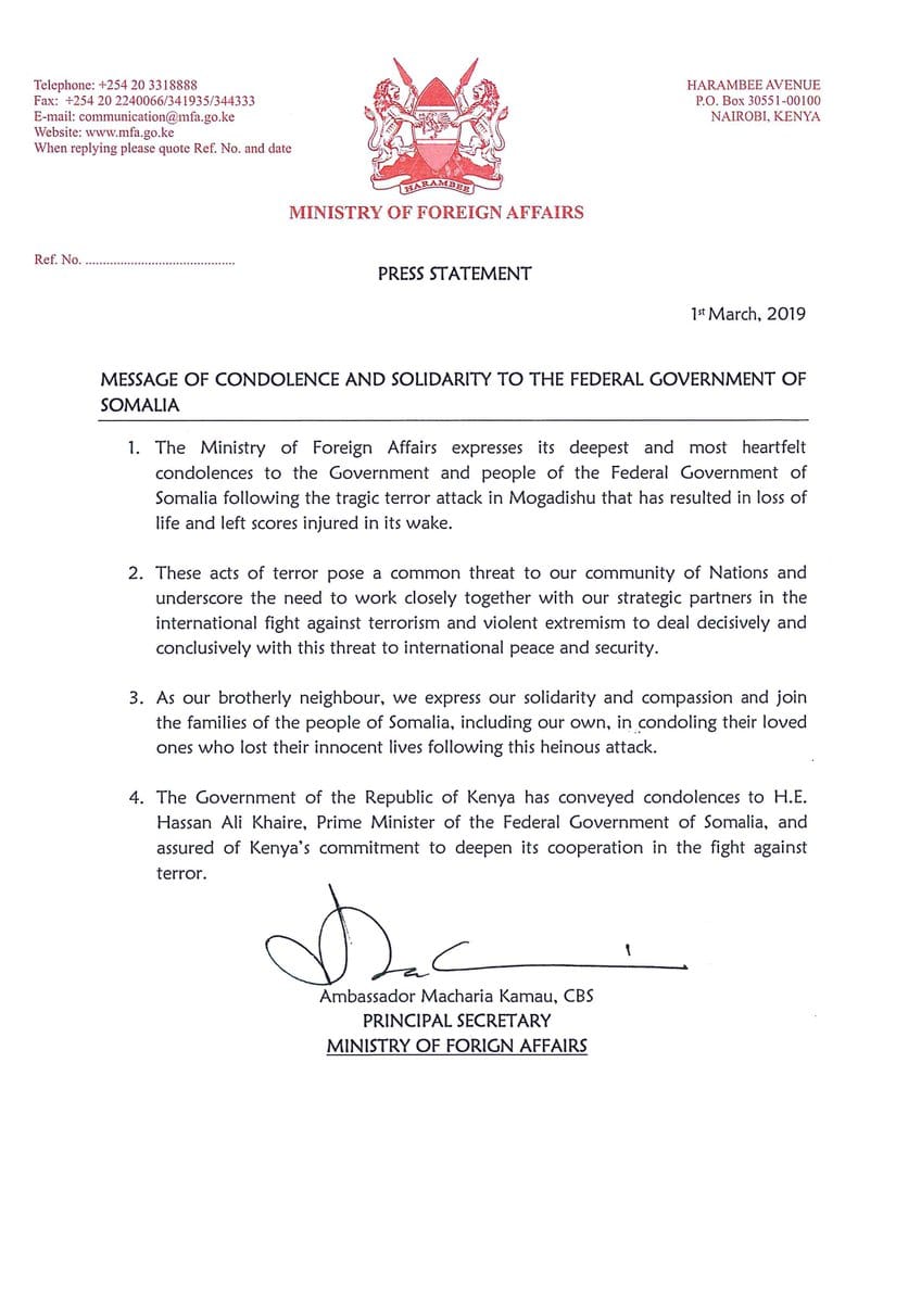 Warqaddii KENYA oo shaki abuurtay kaddib markii ay iska indho-tirtay Farmaajo lana hadashay R/W Kheyre
