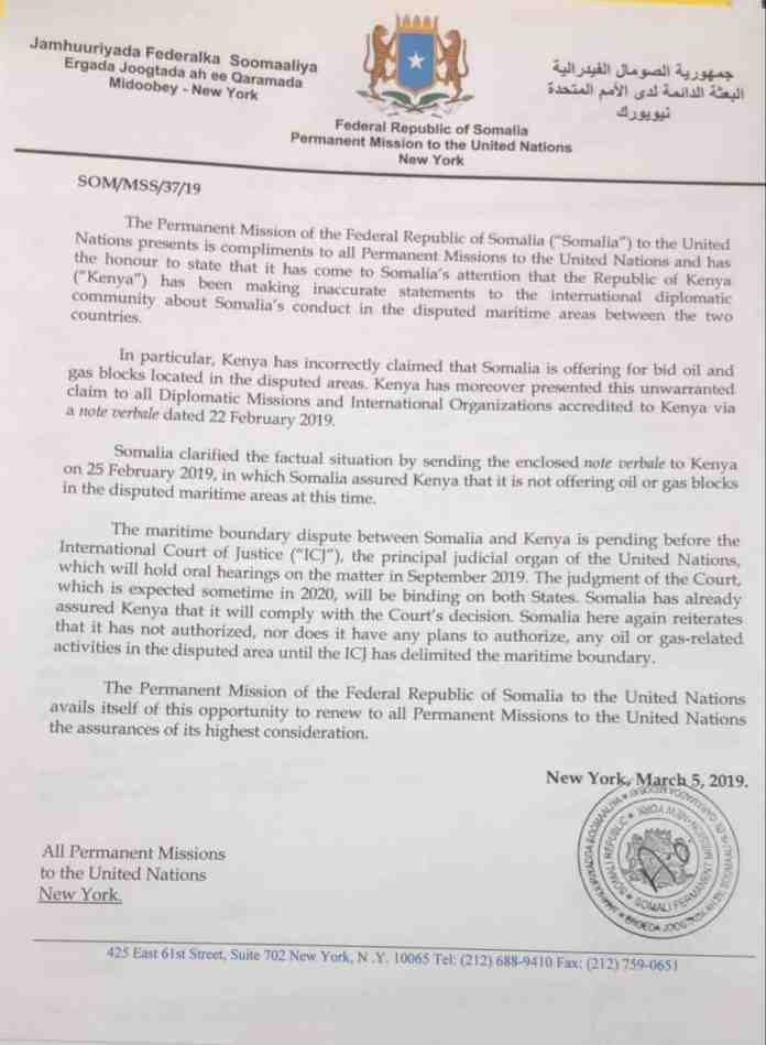 Somalia oo QM u gudbisay qoraal jawaab u ah beentii ay Kenya faafisay (Aqriso)