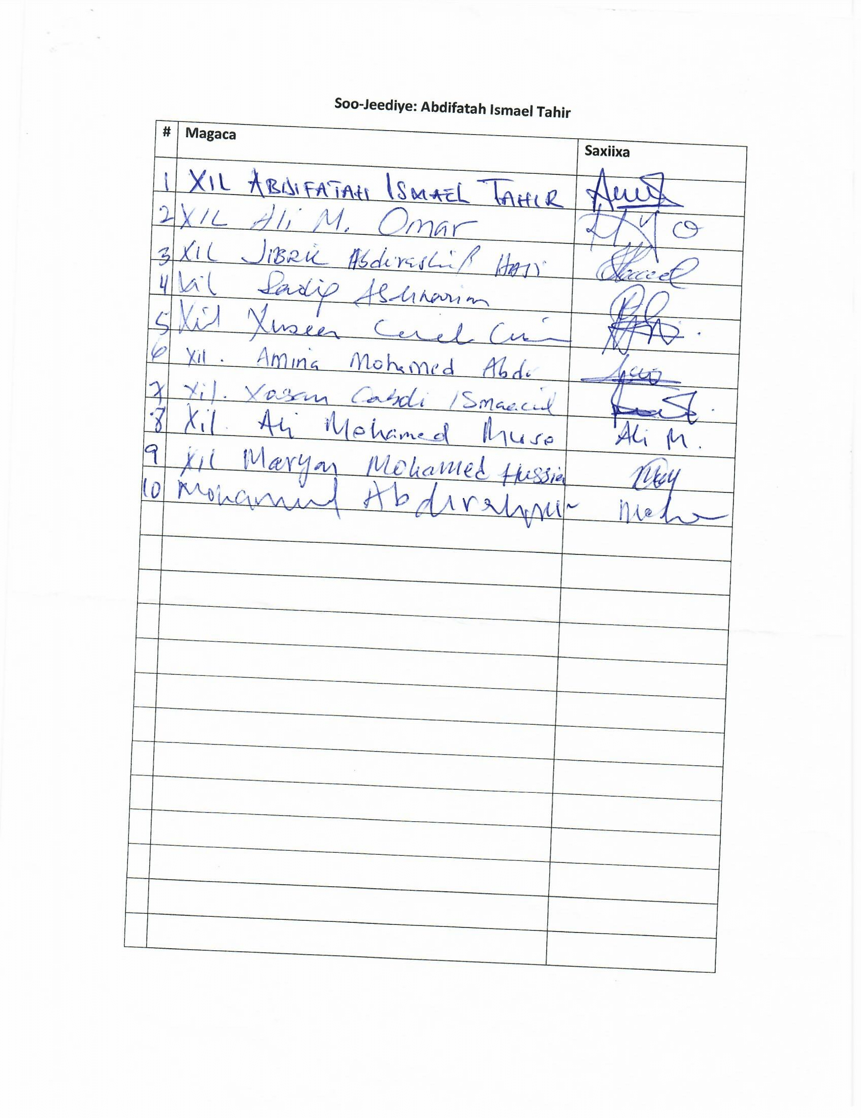 Wasiir Ducaale oo qoraal loogu yeerayo loo diray 14-kii bishan ayaa xitaa diidanaa inuu kasoo jawaabo, ayada oo isku dayo badan oo ay la sameeyeen xildhibaanada uu dhegaha ka furaystay.
